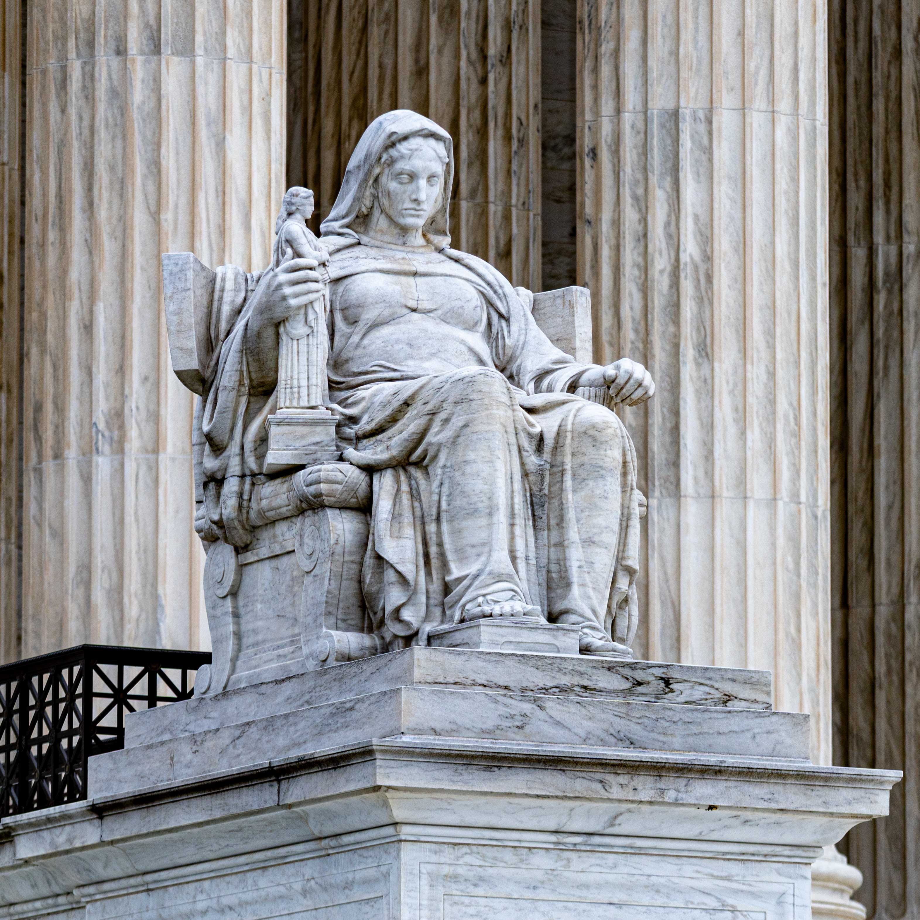 The walk concludes at the Supreme Court, where the statue Contemplation of Justice depicts a seated, muscular androgenous figure holding a smaller personification of Justice. Duke observes a visual rhyme with the Heritage statue. The larger figure studies the smaller one in her hands. The repetition of scale and grip suggests evaluation and offering. What happens when justice appears as an object held for decision? Duke treats this image as a continuation of the same grammar that governs the Archives and the Mellon Auditorium.