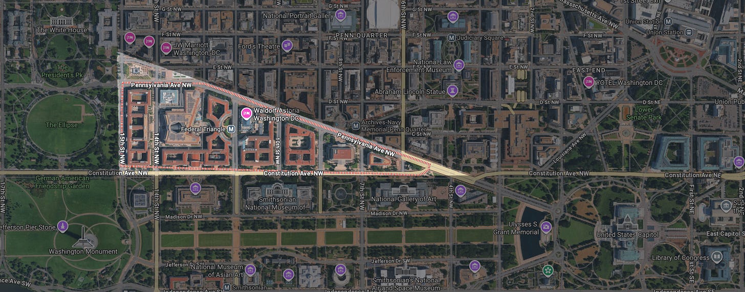 In the SubStack post, Child Sacrifice on Constitution Avenue opens on January 5, 2021, as Washington, D.C., hardens its streets ahead of the Stop the Steal rally and the certification of the Electoral College. Duke walks Constitution Avenue as a working photographer, surveying light, stone, and scale. Power tools cut into pavement. Barricades rise. Police lines thicken. The city prepares its surfaces for a public event, and Duke’s attention shifts upward toward pediments, statues, and inscriptions that dominate the Federal Triangle.