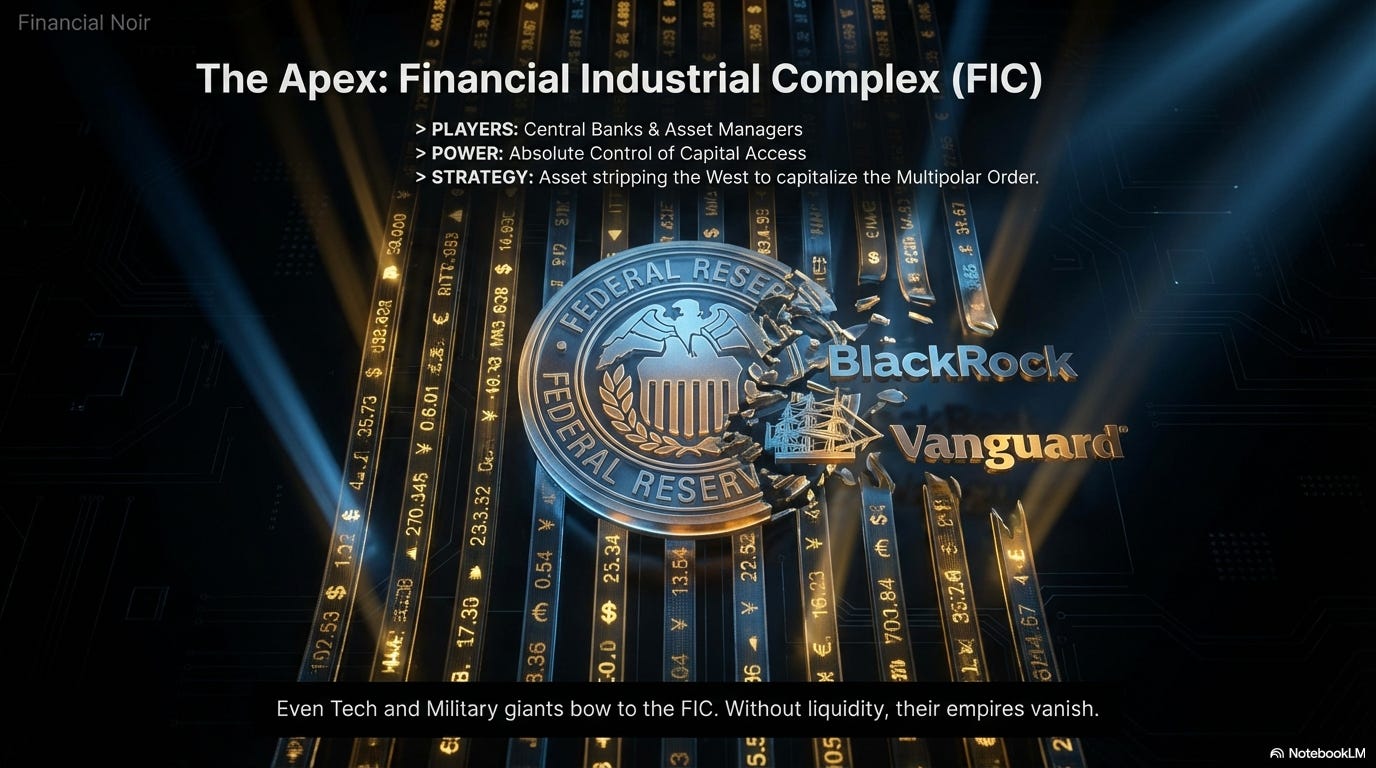 This podcast synthesizes Simon Dixon’s ontological framework for understanding global power as a system directed by the Financial Industrial Complex, a network of commercial banks, Federal Reserve member institutions, and asset managers such as BlackRock, Vanguard, and State Street.