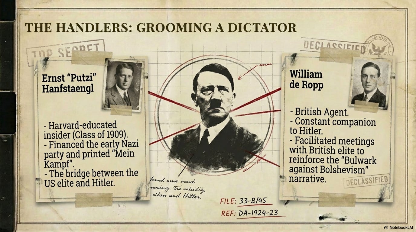 Harvard graduate Ernst “Putzi” Hanfstaengl entered Hitler’s circle in the 1920s, coaching him on presentation and introducing him to influential Americans, including Franklin D. Roosevelt’s associates. British intelligence veteran William de Ropp served as an intermediary between Hitler and London.