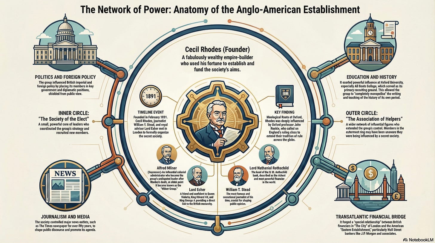 Dr. McGregor and Dr. O’Dowd identify a lineage of influence that begins with Cecil Rhodes’s “Society of the Elect,” founded in 1891. This organization, according to historian Carroll Quigley, united elite graduates of Oxford and other British institutions through a central goal: the creation of a global Anglo-Saxon empire.