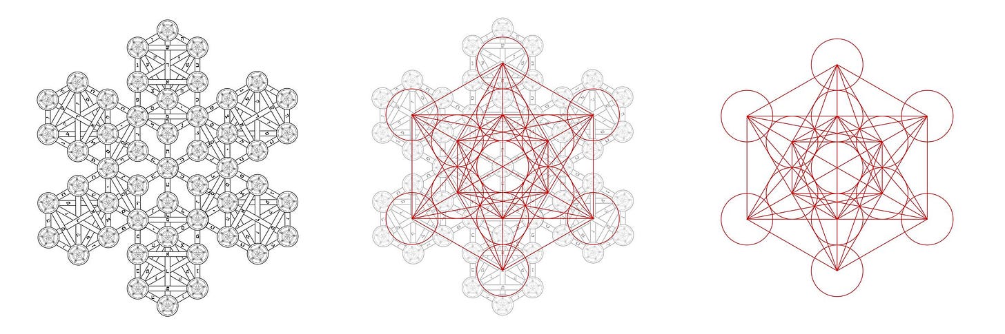 Mrs. Heritage History defines Phoenicianism as both cult and thalassocracy — a maritime rule sustained by secrecy, finance, and information control. She links ancient trade networks to the organizational logic of modern corporations. Duke compares the consolidation of airlines into three major carriers with the unbroken succession of sea powers from Tyre and Carthage to Venice, Amsterdam, and London. Mrs. Heritage History agrees and calls Freemasonry a “meta secret society,” a coordination network connecting smaller guilds, chivalric orders, and mercantile fraternities. She refers to Duke’s “snowflake diagram,” in which six Trees of Life form Metatron’s Cube, as an apt model for hierarchical yet compartmentalized control — each node aware only of its immediate sphere.
