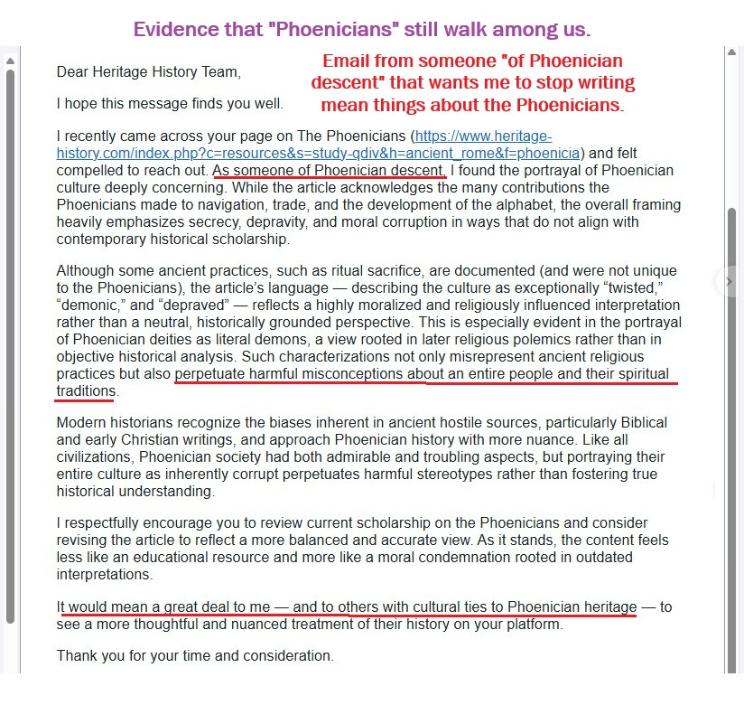 Mrs. Heritage History recalls receiving an email from a self-identified Phoenician descendant criticizing her portrayal of the culture as “twisted, demonic, and depraved.” The writer objected that her summary of ritual sacrifice reflected a “religiously influenced interpretation” inconsistent with academic neutrality. Duke reads the message aloud, observing that its tone resembles institutional defense rather than scholarly disagreement. Mrs. Heritage History notes that the contested passage appeared on a section of her site written for ninth graders, intentionally restrained in detail. She calls it “G-rated history” compared to her private research, insisting that moral clarity, not neutrality, defines historical judgment.