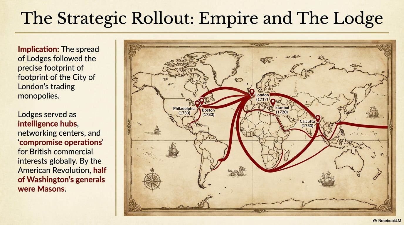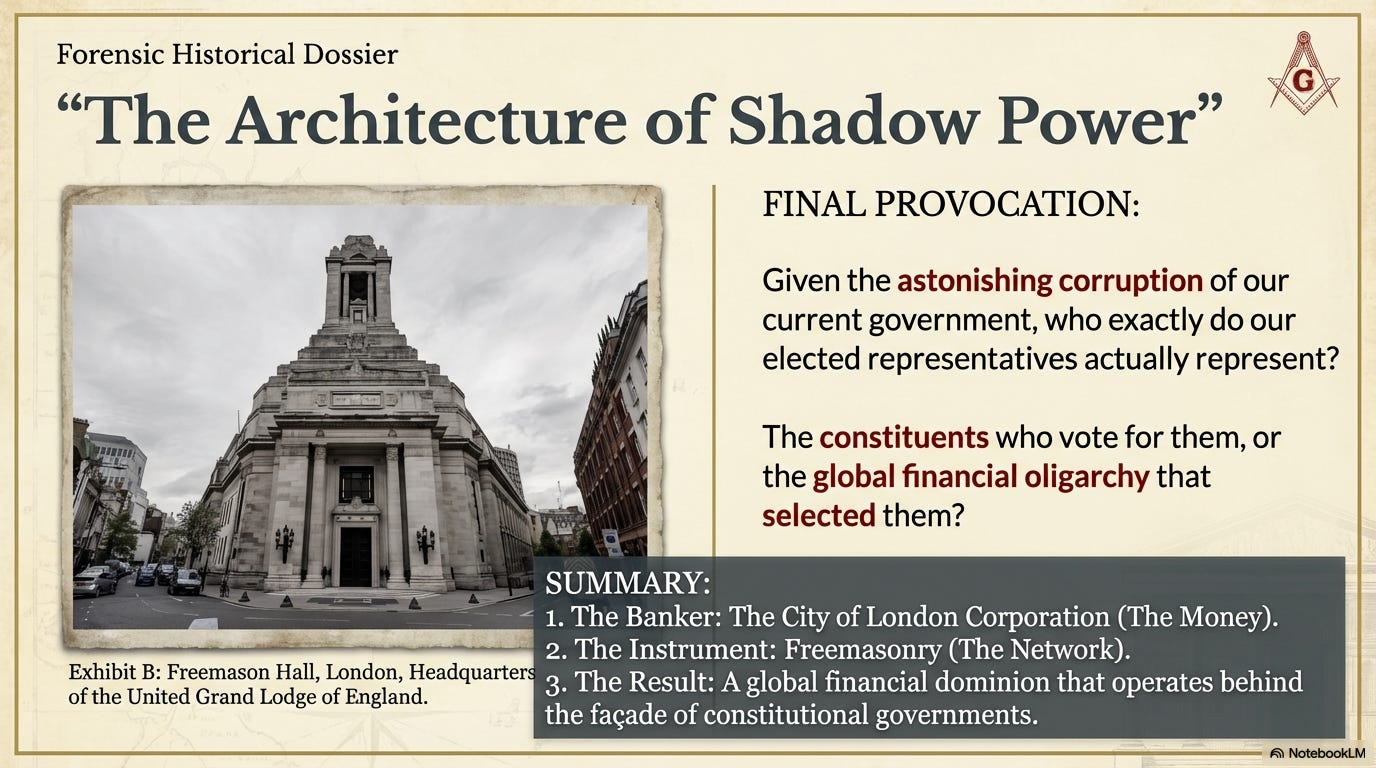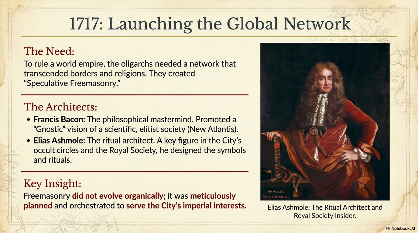 And to assist them in ruling a world empire, the oligarchs of the City of London created Freemasonry.