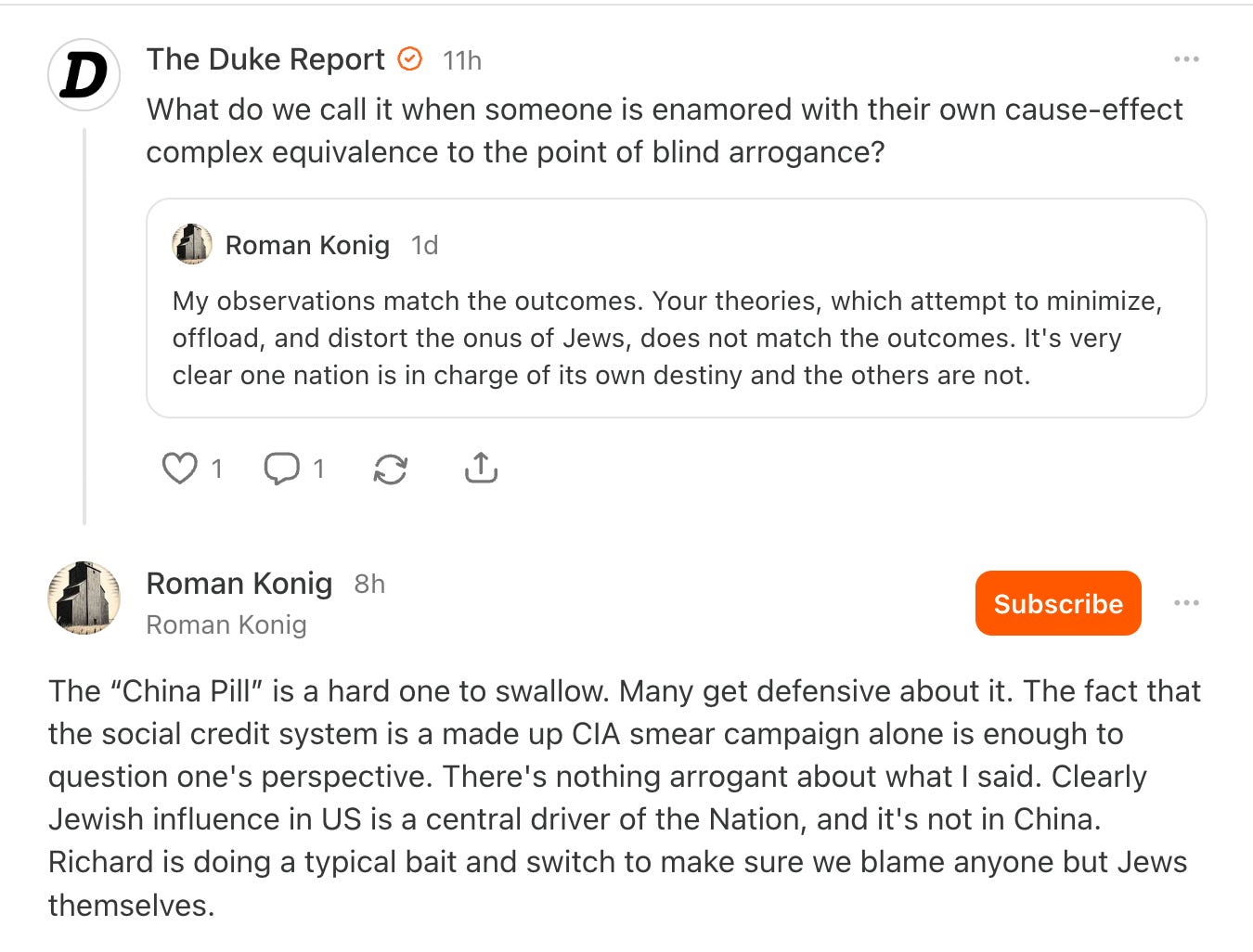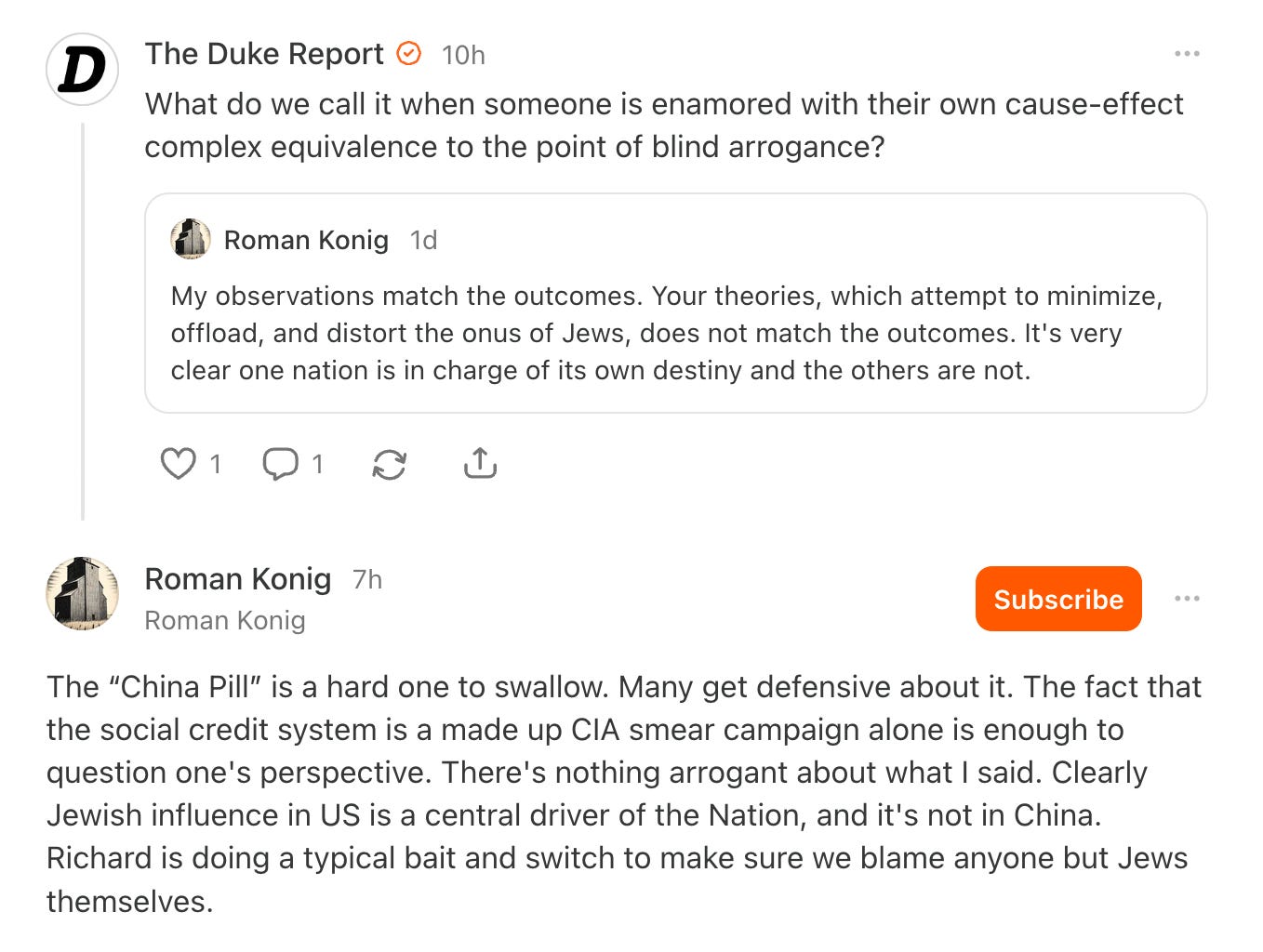“Clearly Jewish influence in US is a central driver of the Nation, and it’s not in China.”