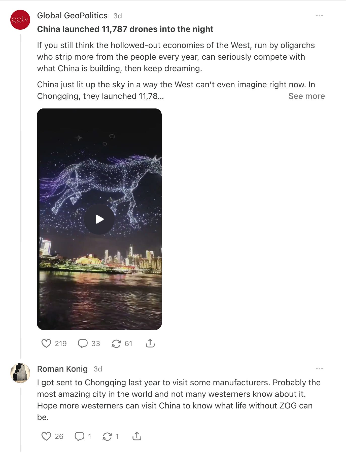 The thread started as a complex equivalence statement by Global GeoPolitics about China, but quickly devolved into some nonsense about, you-guessed-it, “the jews.”